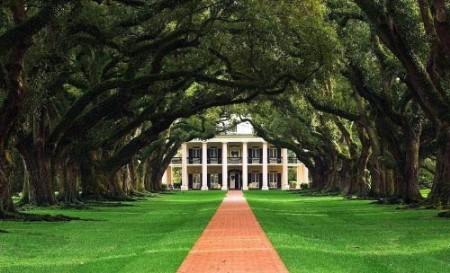 路易斯安那州Oak Alley Plantation橡树园酒店的老橡树甬道。酒店为三星级。