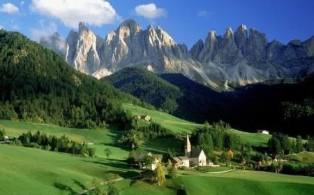 意大利北部Val di Funes乡村的雄壮山色,道罗麦特山位于Bolzano以北的山区,是著名的风景区。