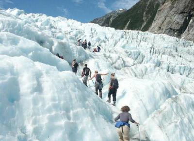 新西兰的弗兰兹·约瑟夫冰河会让人们觉得“冰河时代”还没有过去。这条由大块的冰和雪块组成的冰河绵延7.5英里,所到之处遍及新西兰的南阿尔卑斯山和气候温和的雨林。人们通常认为,新西兰独特的冰雪环境造就了弗兰兹·约瑟夫冰河这个自然奇观,冰河的长度仍不断增加。根据2005年科学家的记录,弗兰兹·约瑟夫冰河每天增长117英寸。
