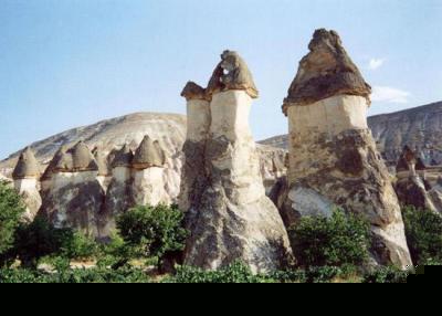 那些对侵蚀效应恨之入骨的人最好到土耳其的卡帕多西亚地区看一看:当地被慢慢风化的岩石造就了世界上独一无二的旅游奇观。所谓的卡帕多西亚“精灵烟囟”实际上是一些特大号的圆锥形岩层,松软的岩石酷似锥形的尖塔,尖塔顶端被大自然赋予了一块更加松软的玄武岩“帽子”。但你不要因此误解,因为这个松软的岩石实际上是典型的火山灰产物。