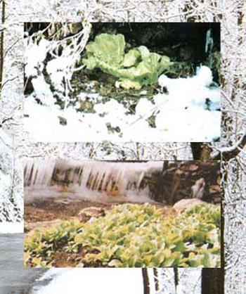 入秋后,这里的气温开始逐渐上升。在隆冬降临、朔风凛冽的时候,“地温异常带”却是热气腾腾。人们在任家山后的山冈可以看到,虽然大地已经封冻,但是种在这里的角瓜却依然是蔓叶壮肥,周围的小草也还是绿色的。任家在这个地方平整了一块地,在上面盖上塑料棚,在棚里种上大葱、大蒜,蒜苗已割了两茬,大葱长得翠绿。经过测定,发现在这个棚里的气温可保持17℃,地温保持15℃。在这小冈上整个冬春始终存不住雪。