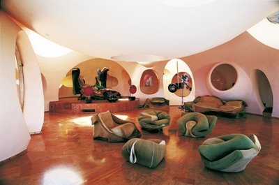 如潜水镜般的建筑外观,波浪状的天花板,拱形的走道,圆形的大床,球状的灯饰家傢俱,自然的采光如圆柱般打入室内,游泳池和一座可容纳500人的室外剧场也是以半径x半径x3.14呈现。 这座以圆为主题,以『泡泡皇宫』为名的建筑物,这是一座由建筑设计师安提落瓦(Antti Lovag)于1975年的概念性的建筑成品, 现为服装设计师皮尔卡登(Pierre Cardin)位于法国坎城海湾边的私人别墅。