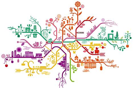 没去过巴黎,也不知道巴黎的地铁图是不是真这样。上面没有文字取代的就是图画,显示主要的景点和商业区域,让不懂法文的游客也能看图乘地铁,到想要去的景点。设计:Antoine+Manuel、点这里看大图。