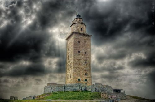 大力士塔是一种古老的罗马半岛上的灯塔。图片上这座塔距西班牙西北部的中心科鲁尼亚约1.5英里。它的名字是“科伦纳”。该塔高55米(180英尺),矗立在西班牙的北大西洋沿岸。“科伦纳”已经接近一千九百年岁,于1791年开始恢复使用,至今在罗马仍作为最古老的灯塔使用。
