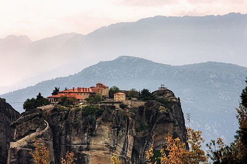 米特奥拉寺院(原意“暂停石头”)是东正教寺院中规模最大,并且最重要的建筑物之一,在希腊,它的意义仅次于圣山。该六个寺庙都建立在天然砂岩岩柱上,在附近的色萨利班都斯山脉,Pineios河流和平原西北边缘,整体上位于希腊中部。进入寺院得前半阶段非常困难,需要长时间借助梯子或别的工具。