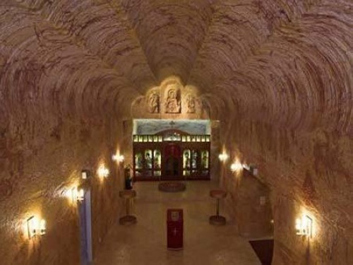 沙漠里的白天酷热难当,最好呆在旅馆里,而洞穴旅馆恰恰是库波佩迪的特色,情人们称其为“洞房”——地地道道的“洞”啊!事实上,镇上除了教堂和医院,基本都是洞穴居所,这些大小不等的洞穴全部是开采蛋白石废弃的矿坑。