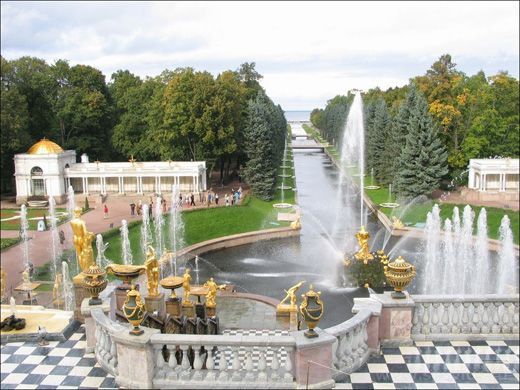 俄罗斯夏宫,又称彼德宫,坐落在芬兰湾南岸的森林中,距离市区29公里。始建于1714年,建筑豪华壮丽,被誉为“俄罗斯的凡尔赛”。