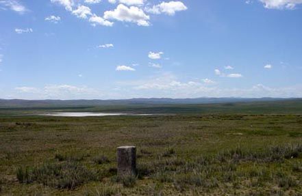 夏宫北面是一个几近干涸的小湖Doytyn Tsagaan,周围草地盐碱化严重。大概当年这里还是一个肥美的牧场。从窝阔台夏宫向北行车约四个小时到达塔米尔(Tamir)河。塔米尔河水量很大,河谷青草茂密,桦树成林。过河之后,溯河西行,一路上所见都是河谷草原的美丽景象。