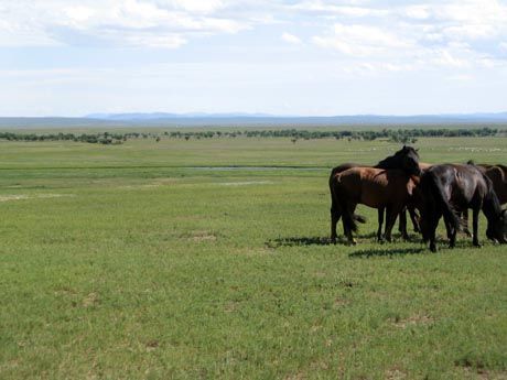 窝阔台夏宫现在是青草茂密的河谷草原