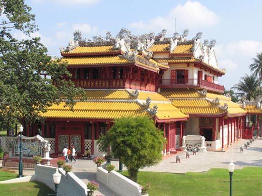 泰国夏宫,即邦巴因王宫。泰国第三个王朝大城王朝的国王曾在曼谷以北修建过著名的夏宫——邦巴因王宫。这座王宫虽然地处泰国,却集合了欧洲园林建筑的大成,是泰国非常有名的旅游景点。泰国历史上共有4个王朝,目前的是第4王朝曼谷王朝。邦巴因王宫是第3王朝大城王朝时修建的,坐落在曼谷以北58公里,大城以南25公里,占地13多公顷,正靠湄南河左岸。在泰国东西南北中五处行宫中,以此处离曼谷最近,也是建筑规模最大,造型最美一处行宫。