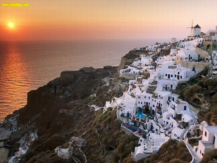 2.希腊圣托里尼岛----希腊著名的旅游胜地,爱琴海上的明珠,柏拉图笔下的自由之地,同时也是浪漫至极的啤酒乐园