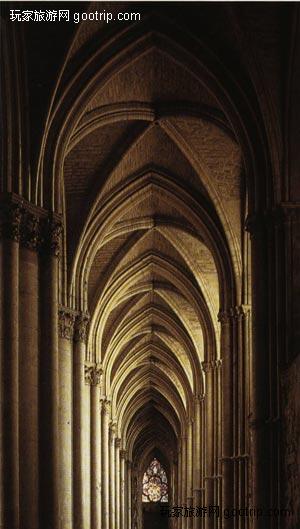 沙特尔大教堂(建于1194-1260年间)可以算是整个欧洲最美丽的哥特建筑。它拥有壮丽的彩绘玻璃窗,其中大多数都制造于12和13世纪。它还拥有保存得非常完好的雕塑。教堂建在一座罗马式教堂的遗址之上,西边的入口保留了原罗马式教堂的一些元素。西面并不协调的两座塔楼是在北面塔楼被烧毁后重新修建的。站在厄尔河(Eure River)岸边,你可以看到美丽壮观的大教堂全景和它的古铜屋顶。