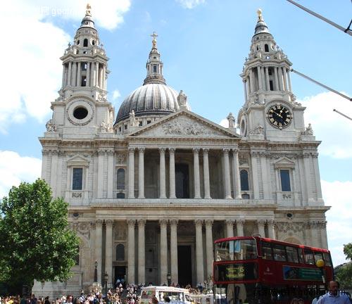 1966年的伦敦大火摧毁了这里原先的建筑,设计师克里斯多弗?雷恩爵士(Sir Christopher Wren)在原址上修建了这座世界闻名的大教堂,是世界上最有名的大教堂之一。这座巴洛克风格的教堂仅仅花费35年就修建而成,却最完美体现了设计师的灵感和鬼斧神工般的高超技艺。其中的珍宝包括维多利亚时期的镶嵌画、回音廊和数不胜数的浮雕和塑像。