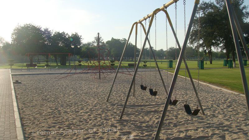 到处都分布着的儿童游乐设施 下面铺了软软的沙 如果孩子跌下来能减少伤害