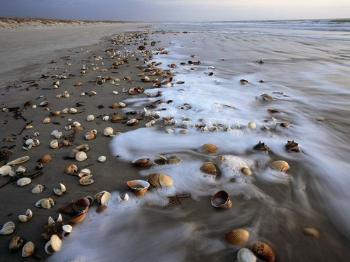 乔治亚散布在乔治亚州坎伯兰岛国家海滨公园海岸边的贝壳。1996年,小肯尼迪与卡罗琳·贝赛特在坎伯兰岛秘密成婚,此后这处僻静的堰洲岛才得以名声大震。