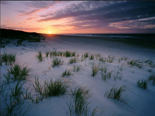 北卡罗来纳青草点缀的奥克雷科克岛海滨,这座岛曾是早期欧洲殖民者的定居之地,同时也是黑胡子海盗后人的家园。奥克雷科克是外滩一部分,由一连串堰洲岛所形成的外滩吸引了无数热爱阳光的游人前来观光。