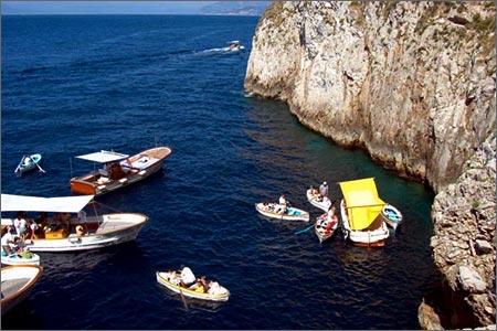 去卡碧岛(Capri)就好象去澳门一样,船程不过1小时,几乎每位去拿玻里的游客也会顺道去窥探她享负盛名的美景。抵达卡碧岛码头后,第一时间,是前往最著名的蓝洞(Grotta Azzurra)。