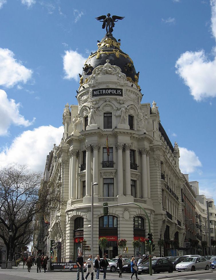 市内现代化的高楼大厦与风格迥异的古建筑摩肩并立、相映生辉。树林、草坪和各种造型别致的喷泉和雕有古代小亚细亚人尊崇的自然女神尼贝莱塑像喷泉最吸人入胜。宏伟的阿尔卡拉门坐落在阿尔卡拉街头的独立广场上,共有5道拱门,是马德里著名的古建筑之一。财政部、教育部和西班牙的主要银行坐落在阿尔卡拉大街两侧,建于1752年的王家美术学院收藏着牟利罗和戈雅等西班牙美术大师的名作。巍峨的塞万提斯纪念碑耸立在西班牙广场上,碑前有堂吉诃德和桑科·潘扎的塑像,巨大的碑身倒映在前面的水池之中,碑两侧是葱郁的树木;有“马德里塔”之称的西班牙摩天大厦位于广场一侧。