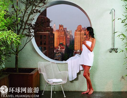 10. 纽约切尔西地区The Maritime Hotel海事酒店复式套房的阳台上九设有淋浴头,游客便洗浴还可以边欣赏酒店外的景色。