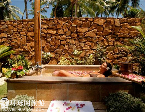 5. 泰国清迈四季度假村,户外淋浴只是泳池别墅的一部分。这些泳池别墅为游客提供了最大限度的隐私。全套浴室包括一只深浴缸和两间隔开的更衣间等。