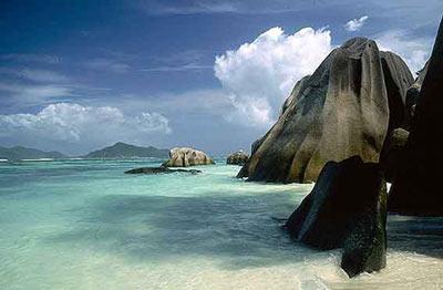 马尔代夫的沙滩只有蓝蓝的水和很幼很白的沙,而大部分沙滩均如此,挑剔一点,我会怪它没有性格!塞舌尔的沙滩便不同,站在沙滩上,会感到一股摄人的气魄,尤其当中几十个有巨型花岗岩作点缀的沙滩,再配合全无杂质的海水——塞舌尔的海水早就被联合国评为世上最洁净的海水。当我们懒洋洋地坐在沙滩上细心欣赏时,会发现这里因石头、海底的深浅再加海藻的反射,整个大海有宝蓝、碧蓝、青绿等多种层次。