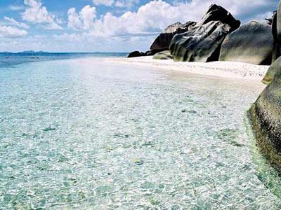 马尔代夫的沙滩只有蓝蓝的水和很幼很白的沙,而大部分沙滩均如此,挑剔一点,我会怪它没有性格!塞舌尔的沙滩便不同,站在沙滩上,会感到一股摄人的气魄,尤其当中几十个有巨型花岗岩作点缀的沙滩,再配合全无杂质的海水——塞舌尔的海水早就被联合国评为世上最洁净的海水。