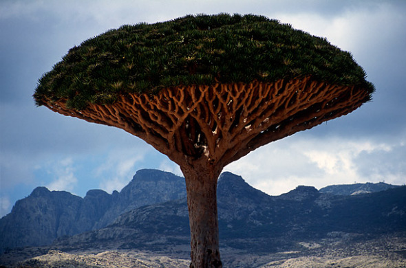 龙血树仅发现于索科特拉岛的高原上。人们将这种神奇的树木称为龙血树,因为它能产生深红色的液体,被认为是龙的血液,而且这种液体具备药用价值。