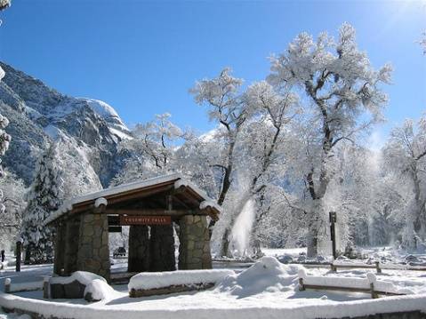 约塞米蒂瀑布公交车站,位于美国加州,简单的条石和横木结构,架起了都市人躲避喧嚣的世外桃源。