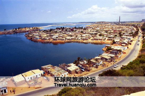 贫富差距大,地少人口多,使得罗安达出现了一个奇特的现象:富人区和贫民窟相依而建。同一个山头,这边是高墙阔院的豪宅,旁边可能就是用铁皮焊起来的穷人住家。富人宅院里绿草茵茵,而从穷人家门前一直到山脚则堆满了各种生活垃圾。 |