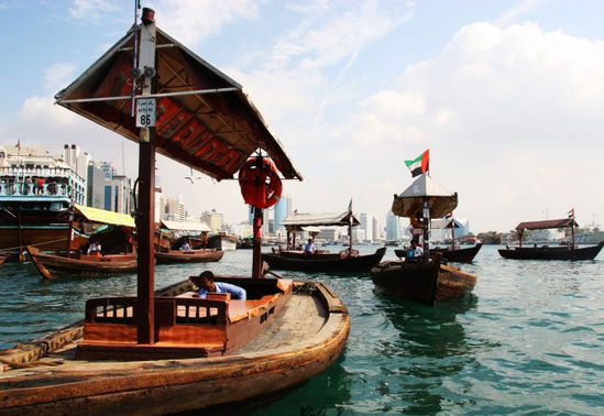 去Bur Dubai区最有人气的市场可以坐地铁,但离站口距离微远,不太方便。更好的路线是在逛完黄金市场后,从迪拜河(Dubai Creek)码头乘坐水上出租车,花一个迪拉姆就可以送到河对岸,就是Bur Dubai市场!从市场一路逛到迪拜博物馆也相当近。迪拜河非常迷人,河水清澈见底,根本无法想象政府是怎么保持河水如此干净卫生的,即便是熙熙攘攘的码头河水也是见底的。