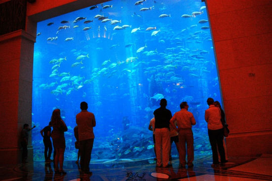 迪拜除了有个人人皆知的七星级帆船酒店(Burj Al Arab)外,在棕榈岛the Palm Jumeirah上面,还有一个六星级的阿特兰蒂斯(the Atlantis),房价跟前者一样那么“疯狂”。住是不考虑的了,里面的水族馆才是靠谱的去处。Atlantis水族馆门票100迪拉姆一张,约合人民币180左右。