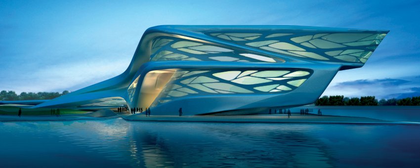 阿布占比的文化中心的计算机模拟图:此文化中心一旦建成还有望成为世界上最大的文化中心,外型看着像疾驰的飞鸟。