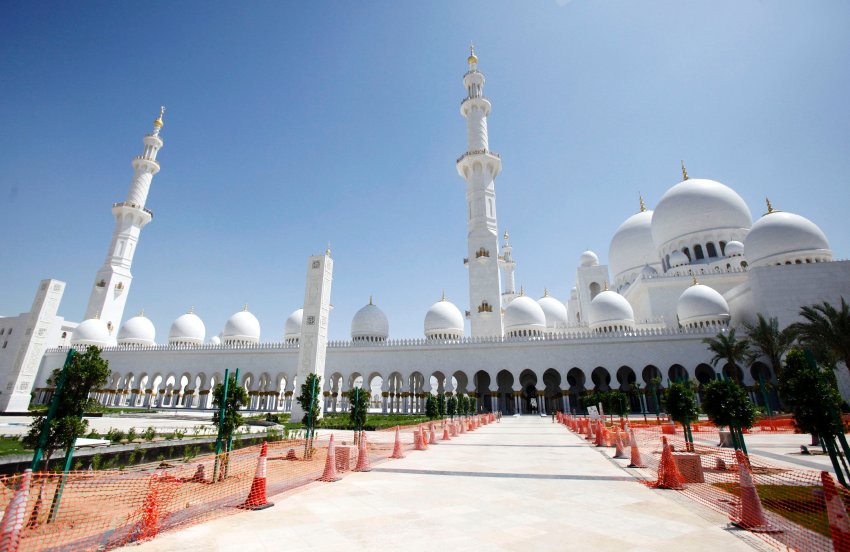 阿布扎比的扎耶德清真寺(Zayed Mosque)是世界上最大的清真寺之一,其主堂内的两件实用物品最值得仔细观摩,一是世界最大的手工编制地毯(7000多平方米),二是价值800多万美元的由德国制造的的镀金枝型吊灯