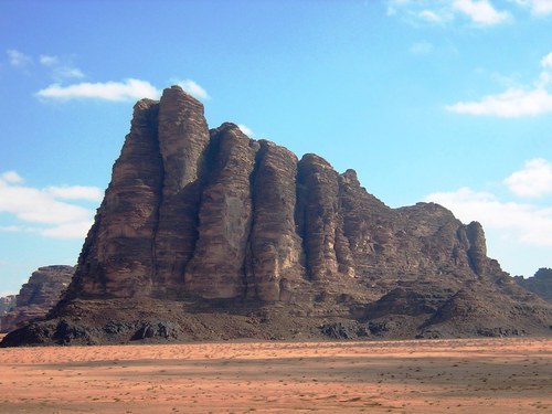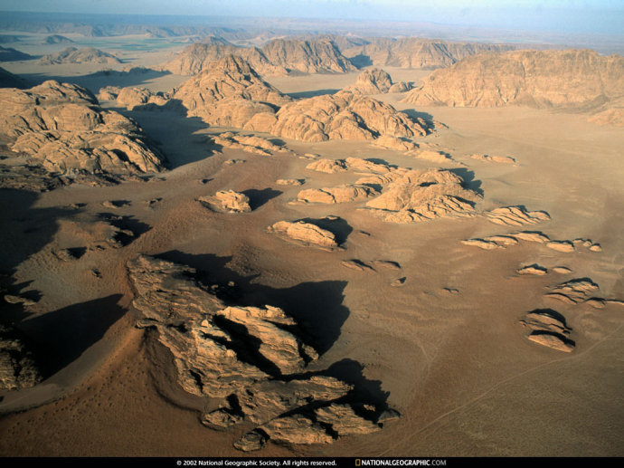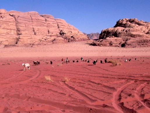 瓦地伦(Wadi Rum,阿拉伯语  وادي رم月牙谷),位于约旦境内的西南部,720平方公里。阿拉伯语的Wadi意曰“河谷,山谷”,Rum就是“酒红色”。在山谷中,平坦、红色的沙地上,一座座孤立的山峰拔地而起,互不相连,高度最高达5600英尺(约合1680米)。由于奇特的地形与火星表面很相似,月谷曾经作为电影《红色星球》拍摄地,并因此获得“月谷”这个昵称。瓦地伦酒红色山谷,是经典电影《沙漠枭雄》,Lawrence of Arabia的外景拍摄场地。英国人“阿拉伯的劳伦斯”英勇善战有谋略,于一战年代为阿拉伯人胜利抵抗驱赶了土耳其军的入侵,成为阿拉伯人心目中的英雄。