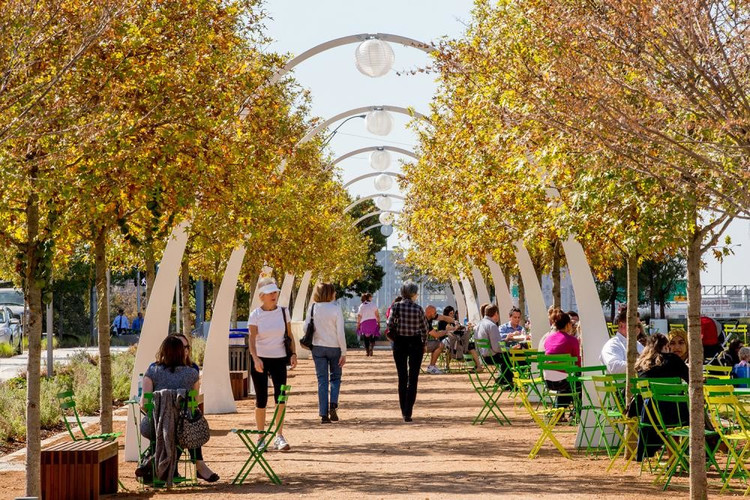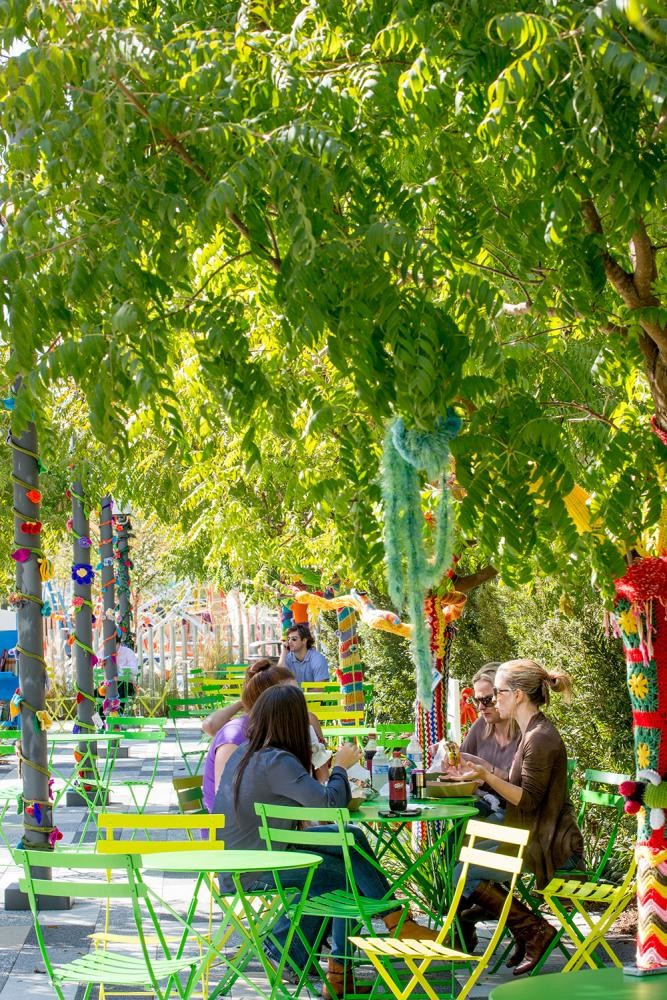 设计师在公园前的草坪上创建了一个城市艺术区,不仅增加了客流量,还为周围的街道艺术中心提供了商业机会。