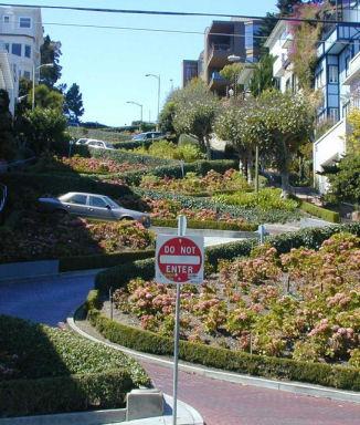 .九曲花街(Lombard):光是看图片就说明了一切。它是世界上最弯曲的街道。当初在19世纪20年代的时候,是为了使繁忙的交通有所喘息而设计建造的,如今却成为旧金山最吸引人的一条街。注意,在这么危险的街上开车可是不能超速的。