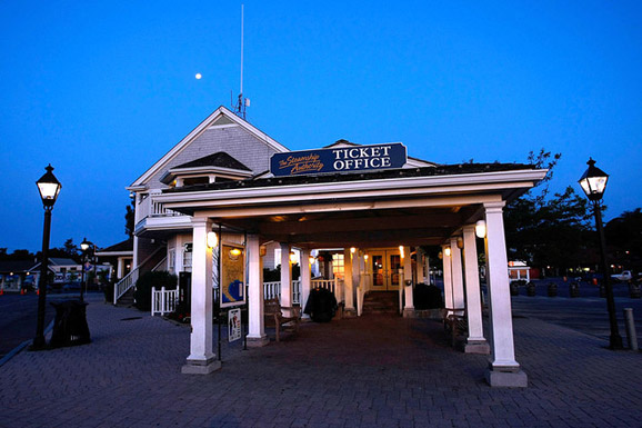 月亮高悬在轮船局上空,这里是葡萄园港的渡船码头所在地。人们可以乘渡船进入小镇,每75分钟就会有渡船从马萨诸赛州的Woods Hole驶来。