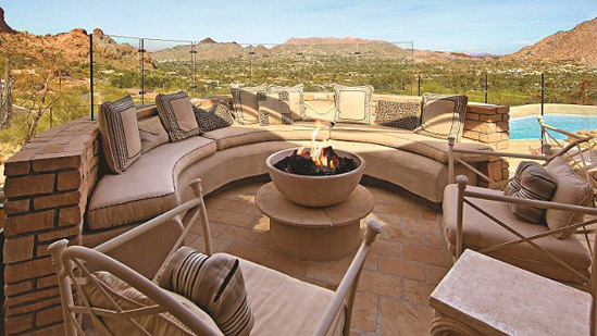 预定这家沙漠中的豪华酒店的游客可以享受私人户外游泳池和网球场地。在这里可以看到驼峰山和天堂谷的全景。这里的豪华套房配有五间房间,五个半浴室,一个带有热水浴桶的向外多层次延伸的露台,豪华的座位以及温馨的长榻。
