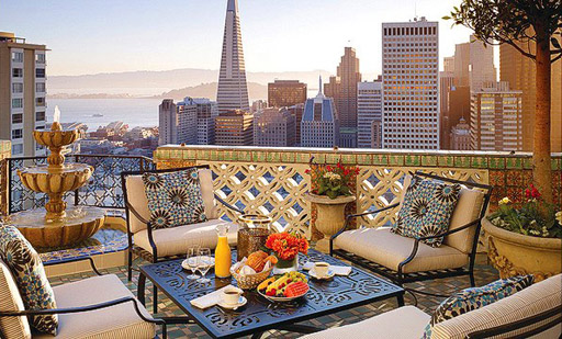 这个面积为6000平方尺的顶层公寓横穿费尔蒙酒店的第八层,充满了灰姑娘童话的风格。休息室从天花板到地面都用波斯瓷砖装饰;两层高的环形图书馆还有一个秘密通道;整个圆屋顶用金箔雕饰成各个星座的图案。这里有男管家,主厨,女按摩师,私人教练及厨师。餐厅可以同时就坐60人,大理石浴缸镶有24克拉的黄金,在宽敞的阳台可以欣赏城市和海湾的美景。