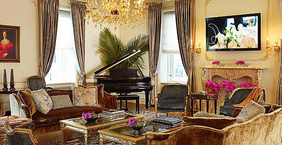 皇家广场套房面积4490平方尺,受路易十五的宫廷启发而建。在这里你可以看到整个第五大街。套房里有三个壁炉,四个用24克拉镀金装饰的浴室,器材齐全的健身房,还有图书馆和皇家厨师。