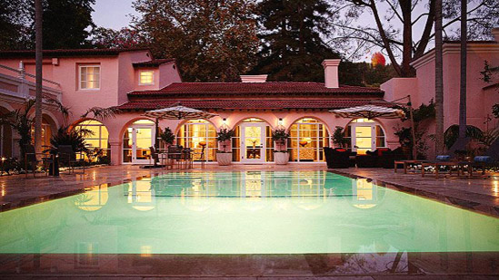 这个豪华的好莱坞山套房配有厨房,可供10人就餐。卧室里有三角钢琴,吧台,电视,淋雨和浴缸。你还可以拥有随身侍从。双层玻璃门一直通向庭院,那里有游泳池,按摩浴缸还有室外壁炉。
