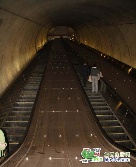 那么西半球第二长的自动电扶梯是在哪一站呢,就是我在华盛顿这几天每天乘坐地铁站——Bethesda站,这也是红线的其中一个站,长度约213英尺,垂直高度约65米左右高。
