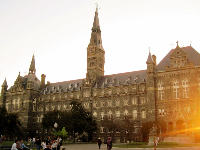 在帕萨迪纳,有加州理工大学Caltech,在乔治城,有乔治城大学,虽然名气上不如Caltech,但也算是历史悠久了。这是一所私立大学,由美国的第一个天主教主教John Carroll建立于1789年,是美国最古老的耶稣会天主教大学,建校的目的是为支持当时在马里兰殖民地饱受宗教迫害的天主教徒。因为这个背景,从1805年起就有耶稣会士参与学校管理,这也是乔治城大学最与众不同之处,但这其实只在名义上,学校的运营基本还是独立于耶稣会的。南北战争后,乔治城大学在奴隶家庭出生的校长Patrick Francis Healy的带领下开始迅速扩展,Healy后来就被称为大学的Second Founder,现在位于校区中心的Healy Hall就是为了纪念他而命名的。200多年来,这所大学培养出众多杰出的人才,活跃于社会各界,最著名的大概就是前总统比尔.克林顿。访问乔治城大学更多信息可见 http://www.georgetown.edu/
