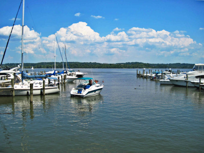 穿过Torpedo Factory的大楼,就到了Potomac河码头,这里停靠了不少私家的游艇,也有游船公司的售票点,这里有船通往华盛顿DC和Georgetown,价格和时刻表可以查阅 http://www.potomacriverboatco.com/