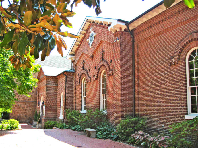 King St往河滨方向走到Fairfax Street(路过市政厅以及广场后),往左拐,这个House就在右手边(过了Visitor Center就是)。前面提到Christ Church是由John Carlyle修建的,这是一位苏格兰商人,移民到北美定居于Alexandria,是建城的几位founder之一,也是本城最早的overseer,并且他也最终病逝、埋葬于这里,他的故居已经布置为Historic Park,开放供游人参观,如果在Alexandria只打算选择一个名人故居参观,就这里吧,4岁以下免费,5-12岁3美元,13岁以上5美元,只在花园中溜达不需要门票,进入House参观才需要买票,有guided tour导游带领参观,也可租赁这个house作为活动场所,更多信息请见 http://www.nvrpa.org/park/carlyle_house_historic_park/