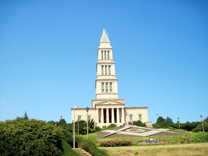 在亚历山大里亚轻轨、火车站的西侧,就是前往镇中心的反向一侧,1922-1932年为纪念第一任总统华盛顿而建,101米高,在小山丘之上,外形借鉴了古埃及的亚历山大里亚灯塔,我到这里的时候只匆匆在外围看了一下,没有入内,更没有上到顶层去,但那里有观景台,俯瞰周围视野应该还是很好的