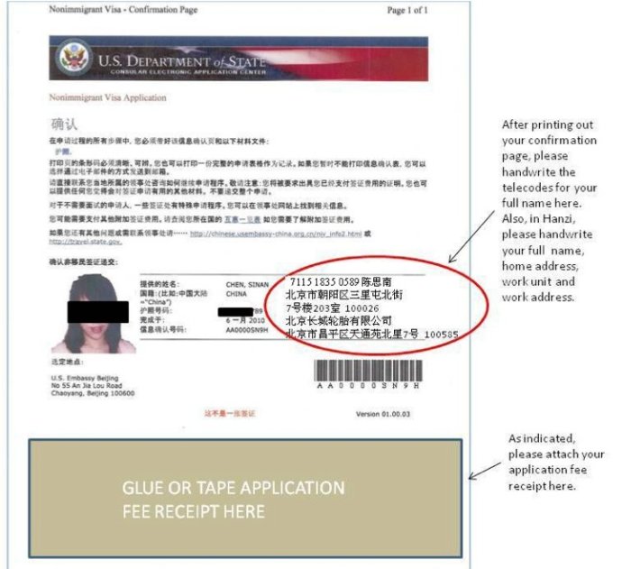 DS-160确认页说明: