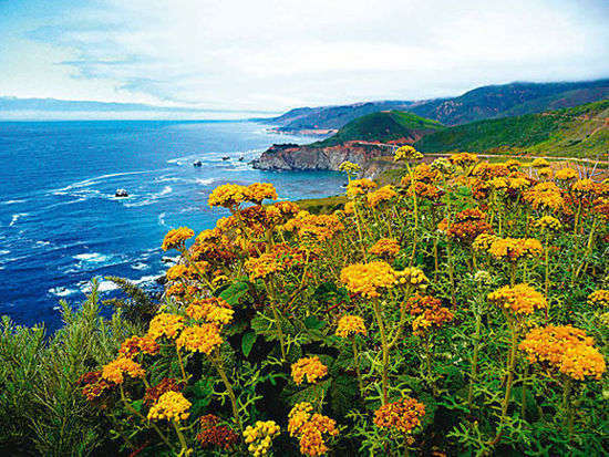 大苏尔长达144 公里,风景明媚。加州1 号高速公路穿过大苏尔,不要错过在公路上众多的出口道或观景点上稍作停留,一览迷人的山色海景。