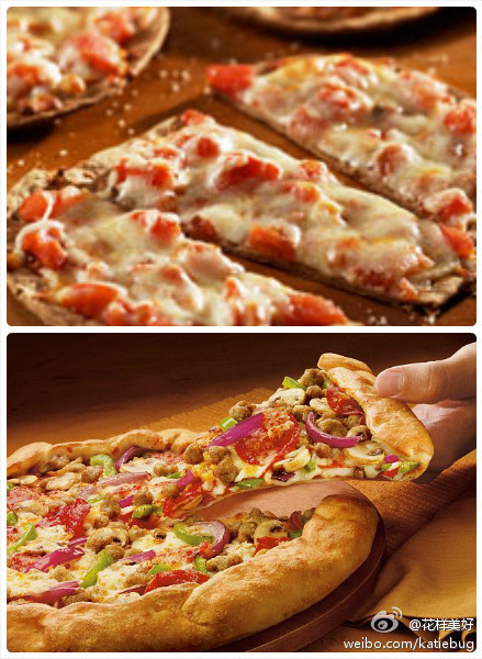 挑选带有蔬菜馅料的全麦薄皮匹萨,薄皮匹萨比厚皮的更健康,卡路里和脂肪的摄入量比厚皮得要少。