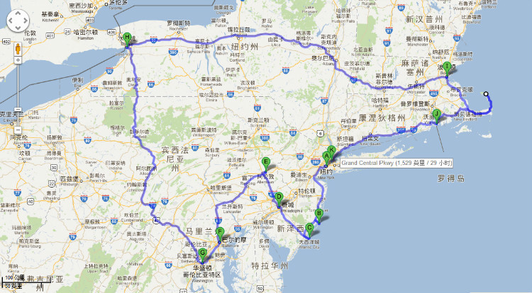 美东海自助游路线图及住宿安排